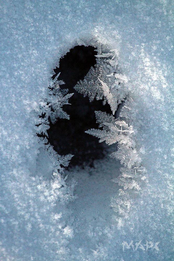 лисий след на реке.иней. зима. след., Шангареев Марс
