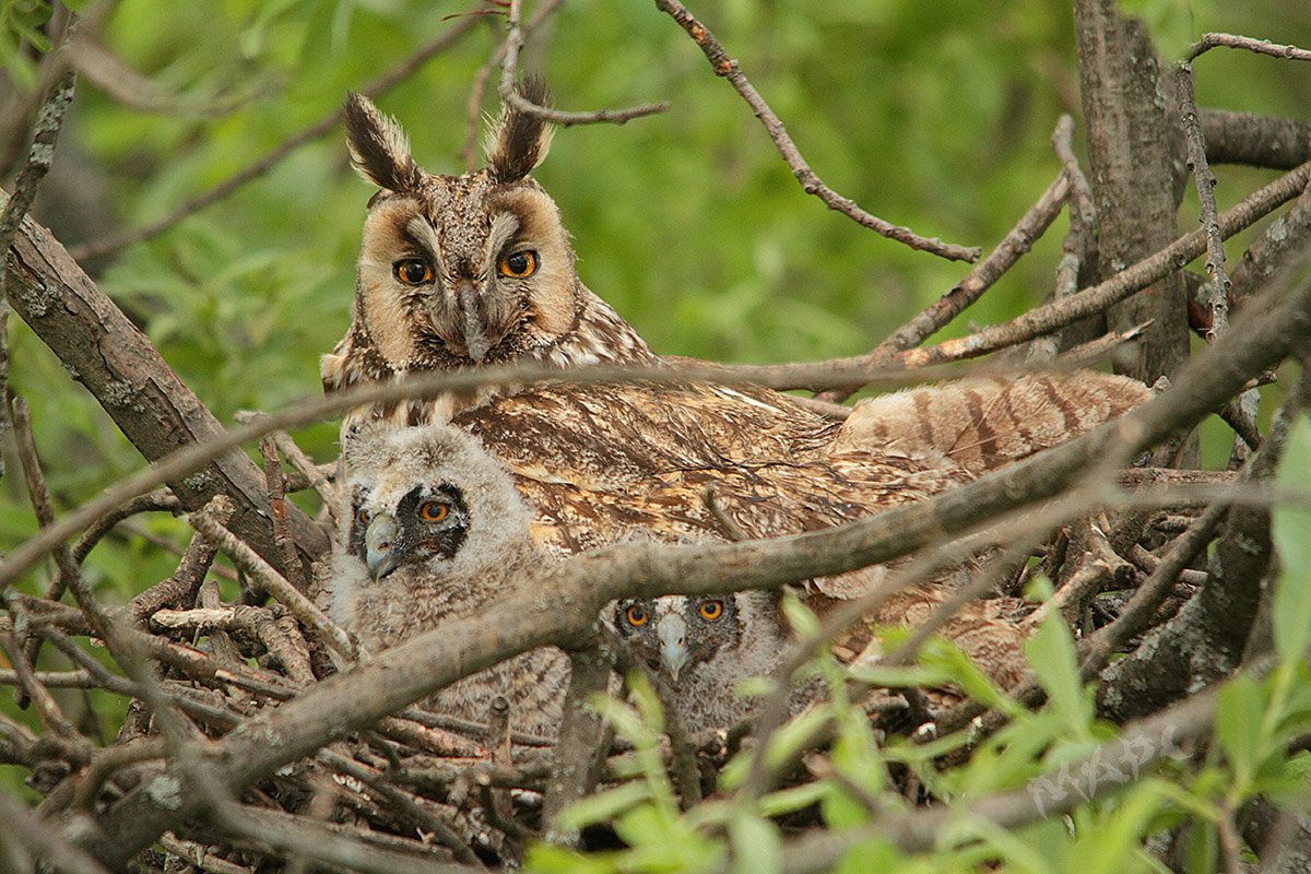 животные птица ушастая сова птенцы гнездо лето, Шангареев Марс