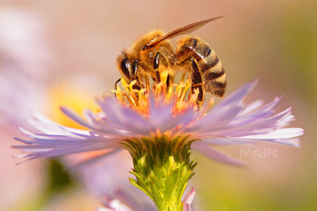макро пчела цветок осень, Шангареев Марс