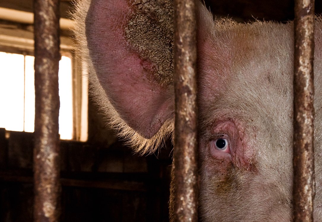 Свиная ферма в Подмосковье. Портрет старого хряка, ставшего отцом, наверное, не менее 100 поросят. Но скоро ему на смену подрастет новый глава семейства.