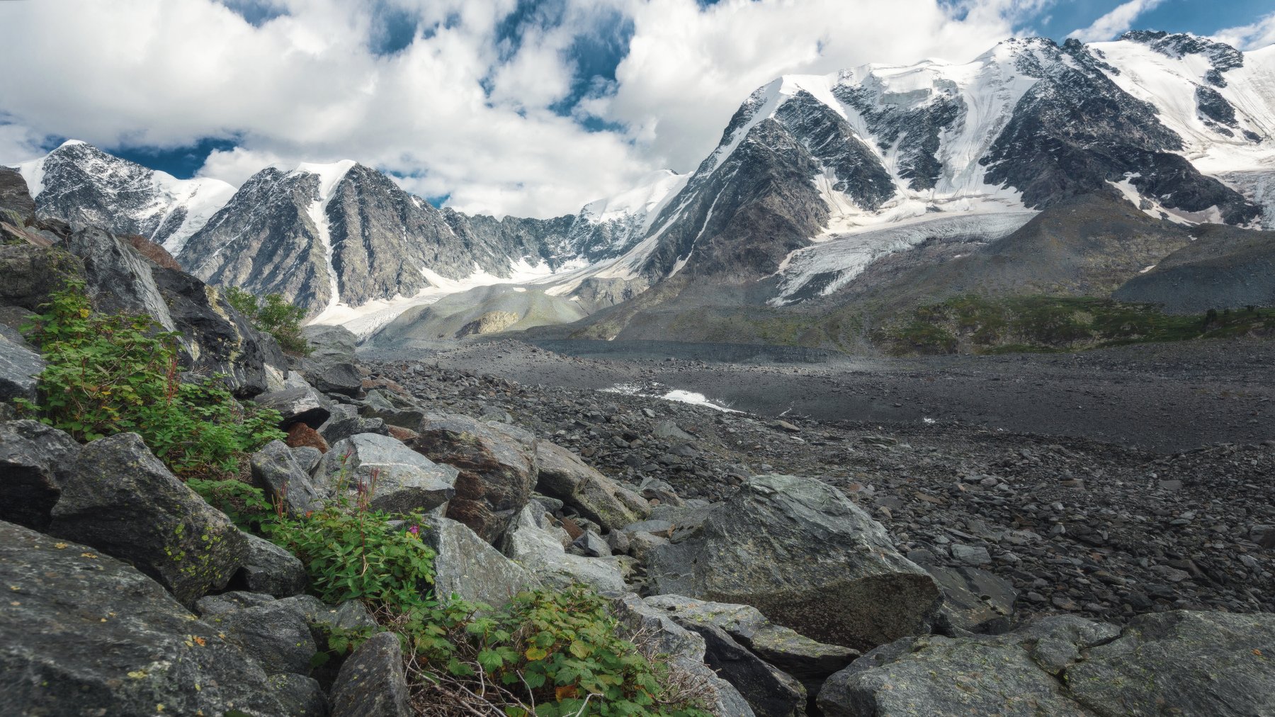 Бесконечный курумник, ощущение, что ты идешь по камням, стоя на месте, пространство сужается и конца не видно, вроде вот он ледник, а ты все идешь и идешь.