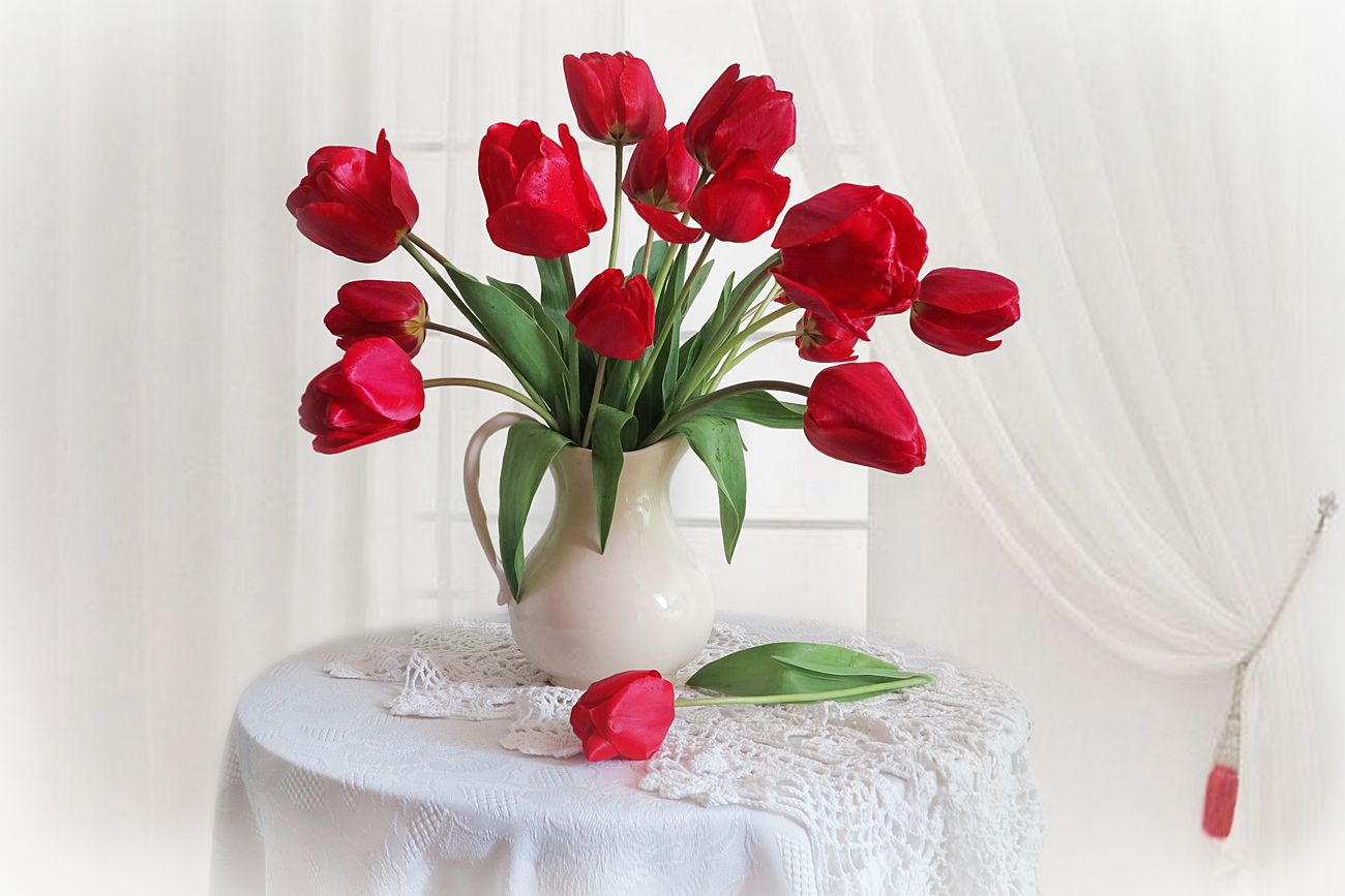 натюрморт,весна,ваза,красные тюльпаны, Алла Шевченко
