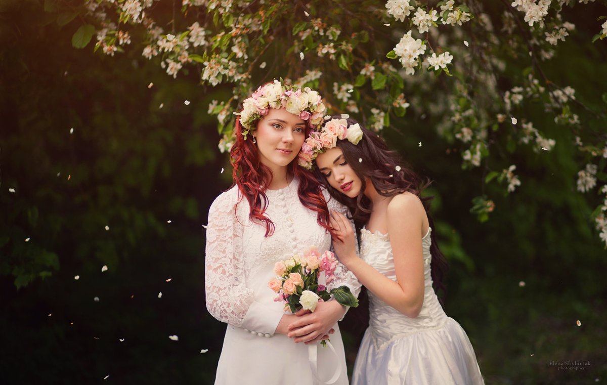 весна, букет, венки, девушки, светлое, белые платья, Шиленок Елена