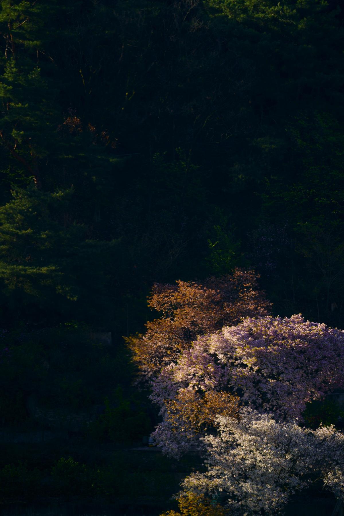 south korea, seoul, spring, flower, cherry blossom, composition, beautiful, light, mountain, morning, contrast, Shin