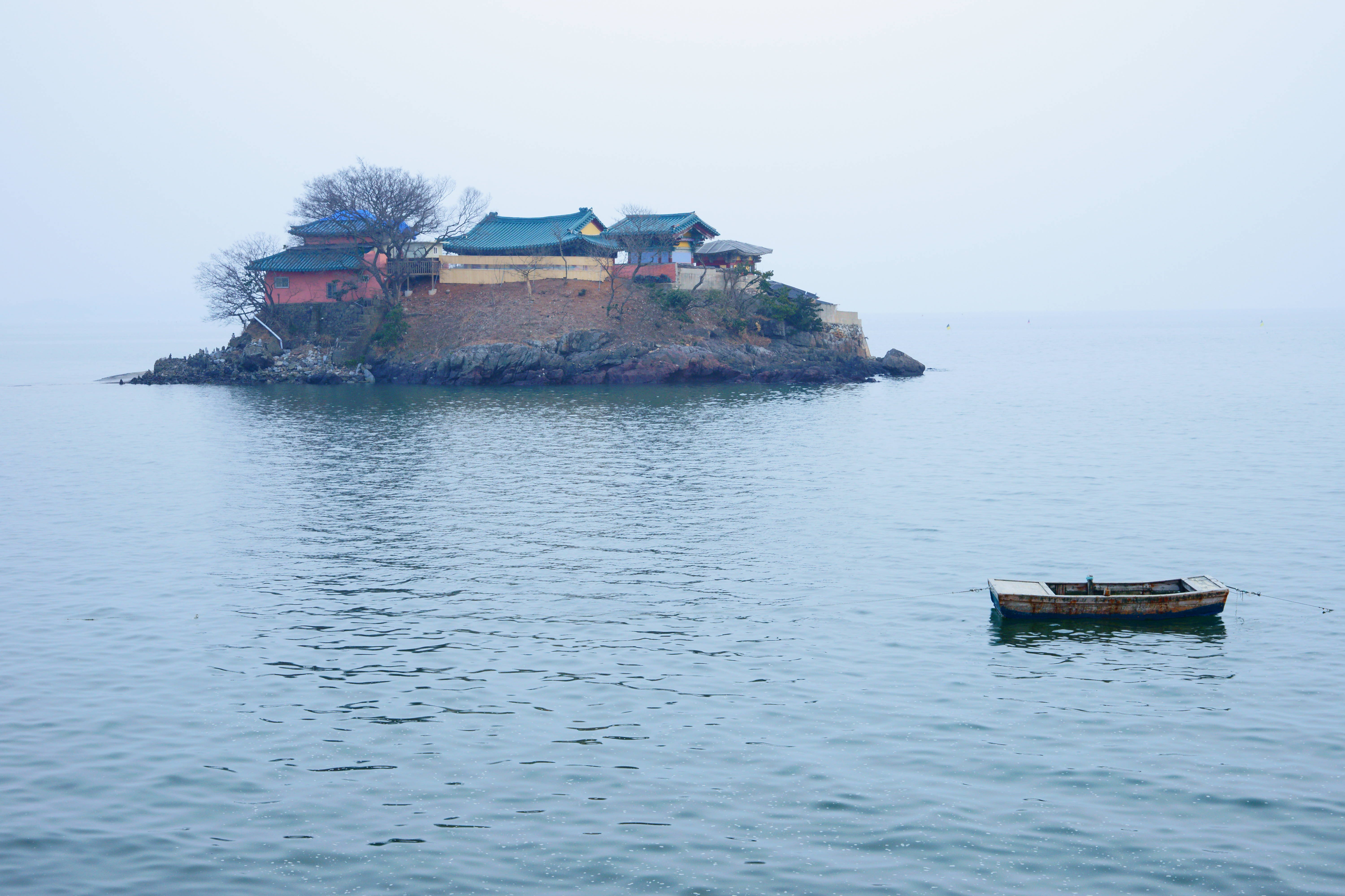 south korea,chungcheongnamdo,sunrise,sea,seascape,temple,architecture,traditional,boat,, Shin