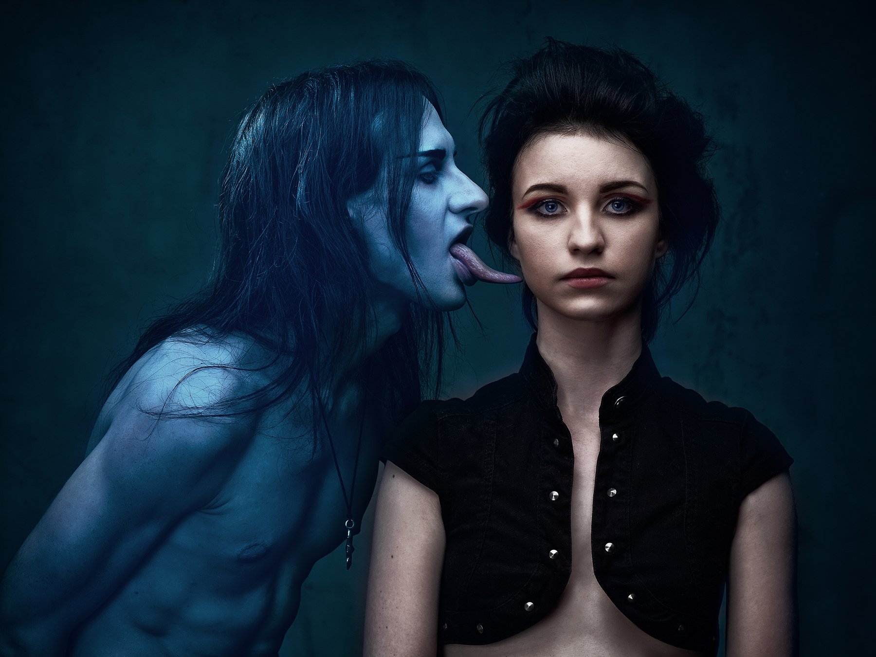"Какая странная фотография . полумистическая.Возвращаюсь к ней четвертый раз. Девушка - хороша, спокойна, уравновешенна, с голубыми глазами, разумно освещена. А некто слева, обладающий потрясающей длины языком и синющным оттенком кожи..как-то мистичен, наверное даже из потустороннего мира.. и мне, конкретно неинтересен.. ( чисто субъективно)"