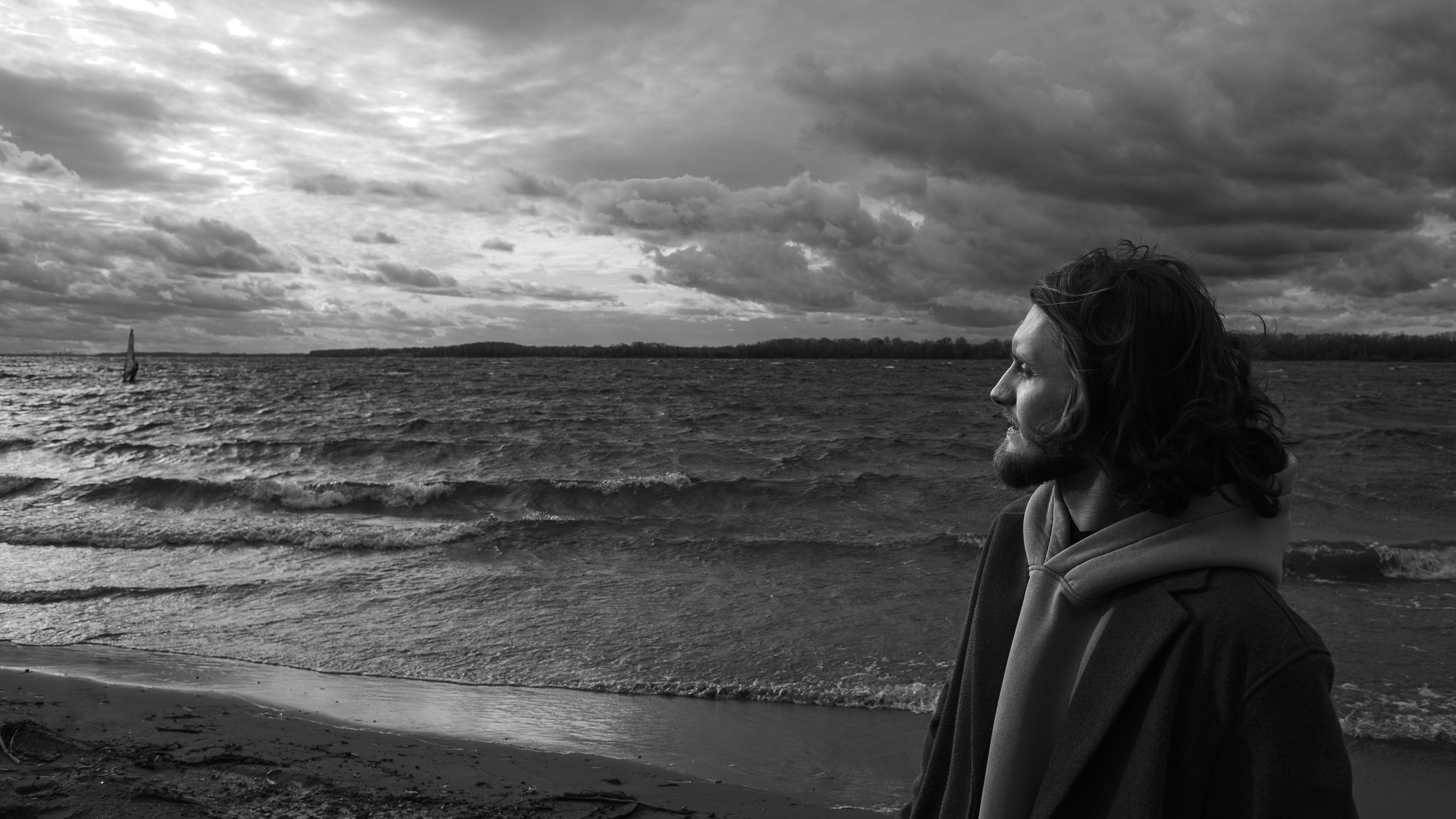 портрет, мужской портрет, чб портрет, ч/б, река, парус, монохром, волга, Dmitry Sharabanov