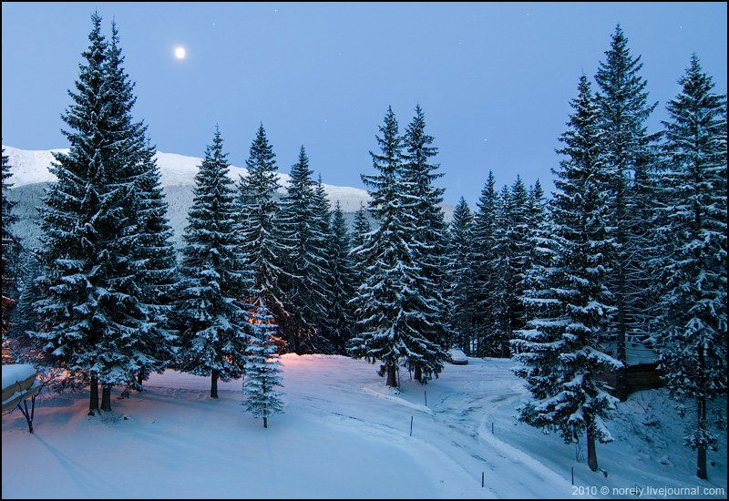 зима, татры, словакия, луна, ели, лес, Nika Shmeleva