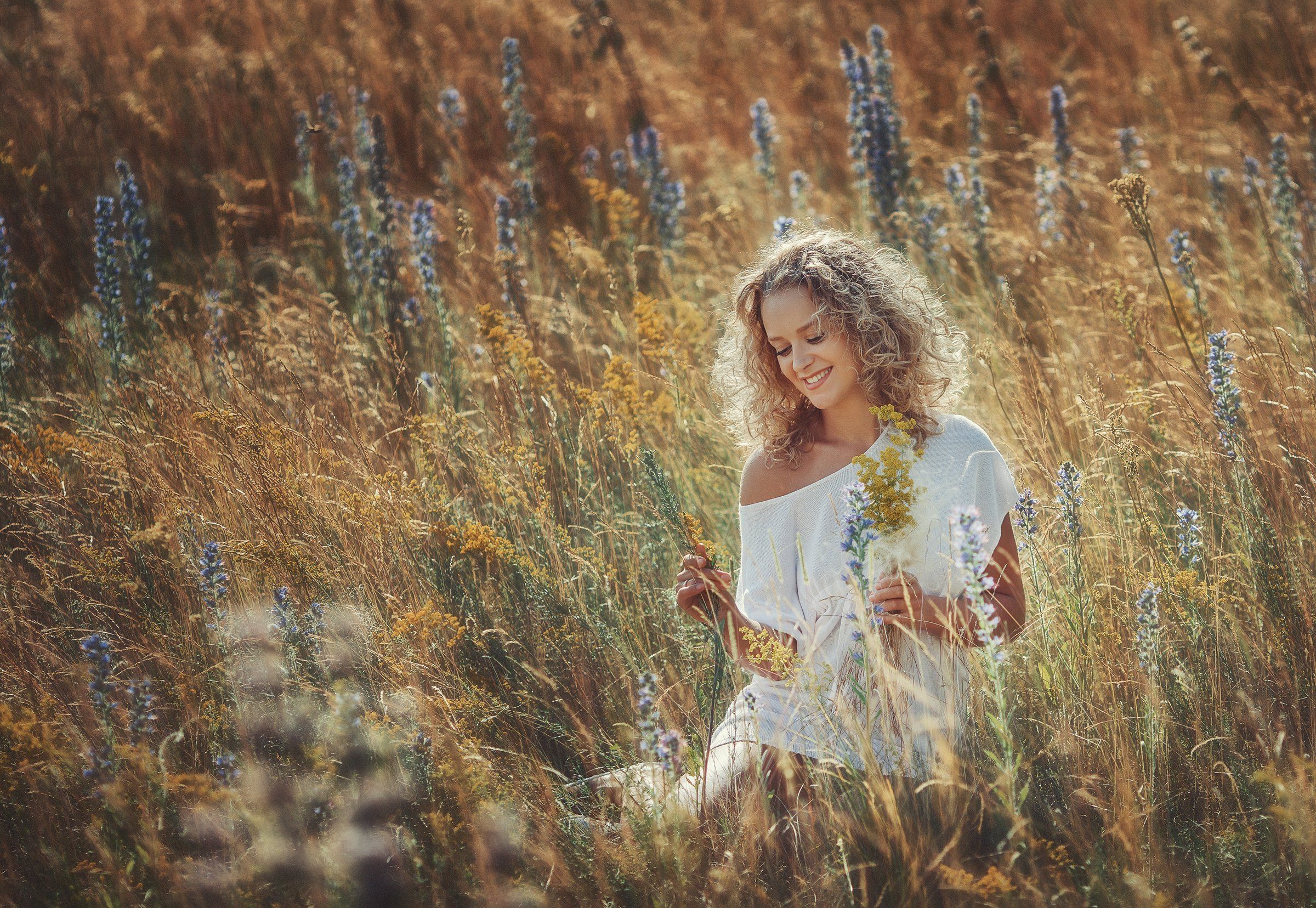 осень, девушка, поле, солнце, Шумкова Элина
