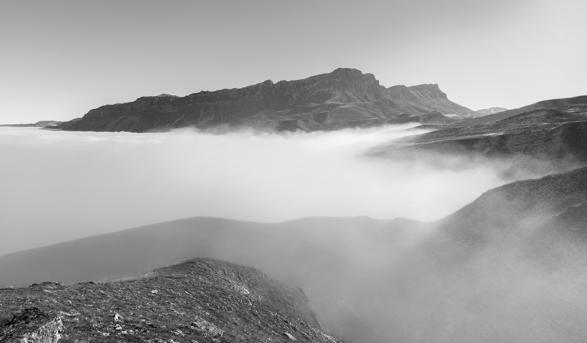 Горы в облаках — как в сне. Простота, но с тяжестью. 🖤