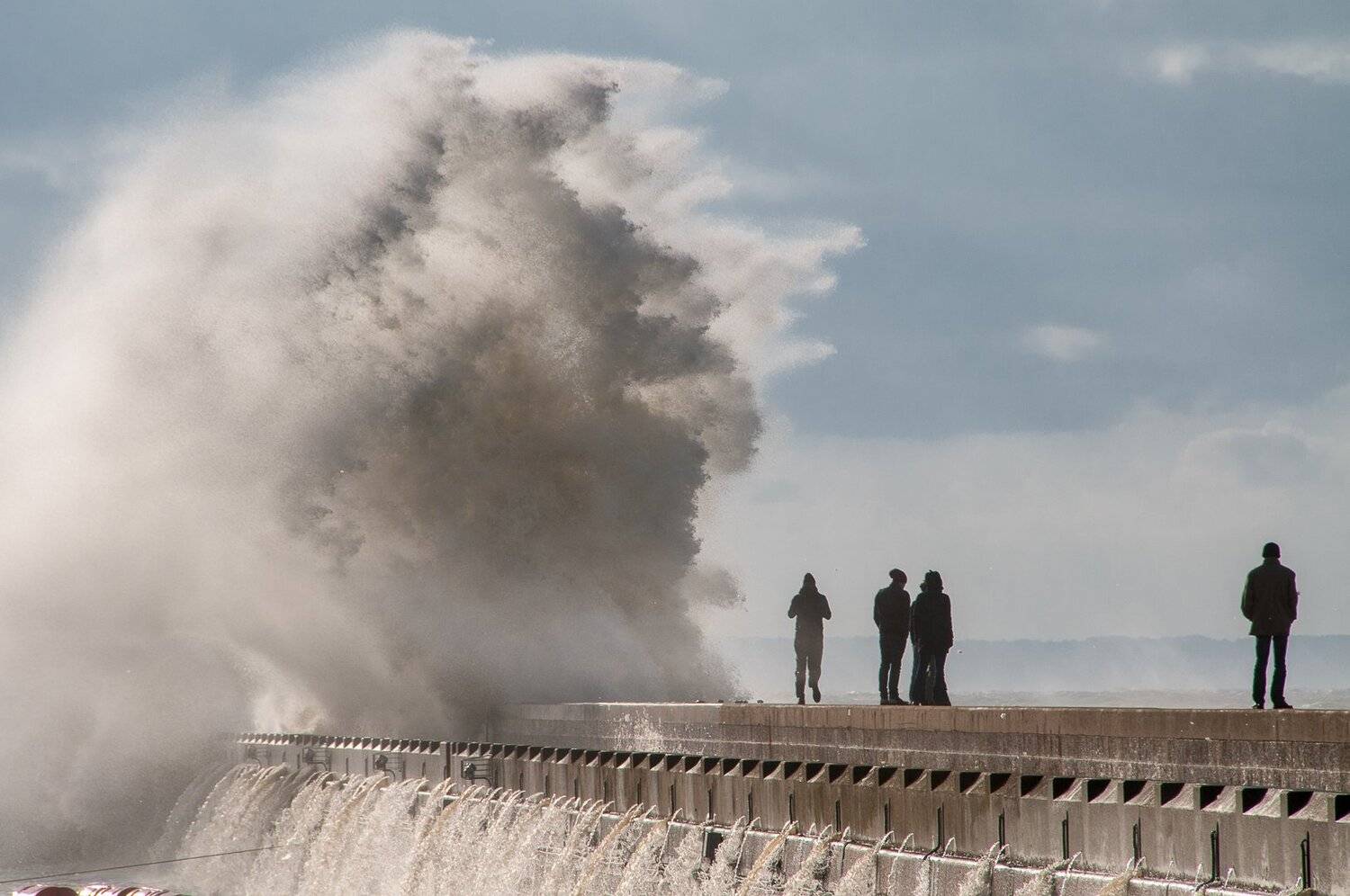 Tempête hivernale en Haute-Normandie à LE HAVRE Les vagues se jettent sur la digue Nord à l'entrée du port du Havre Un spectacle magnifique