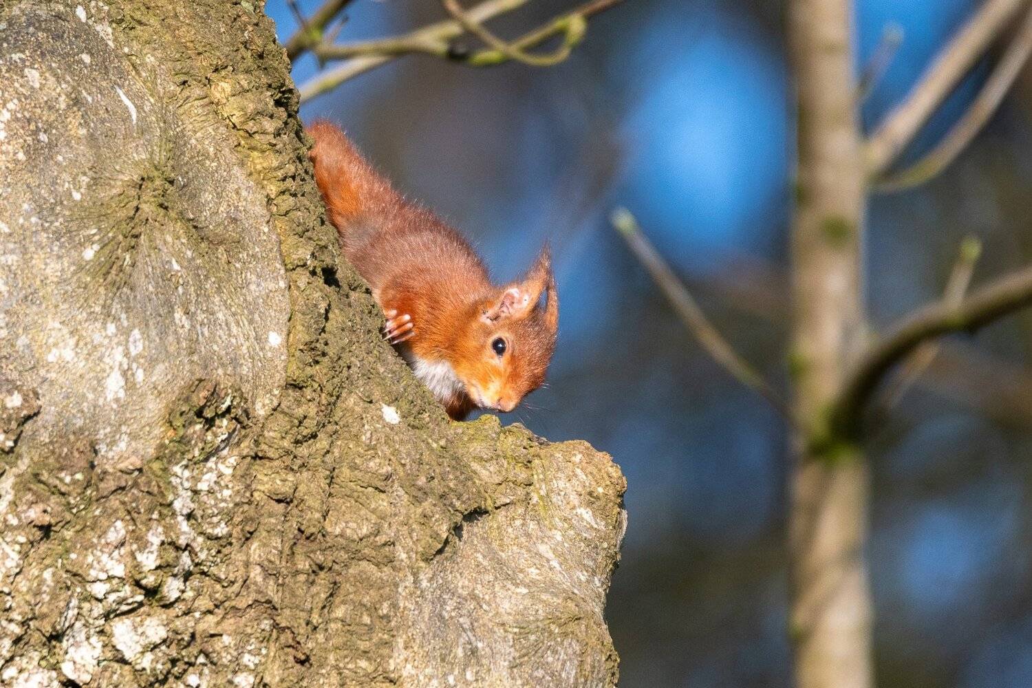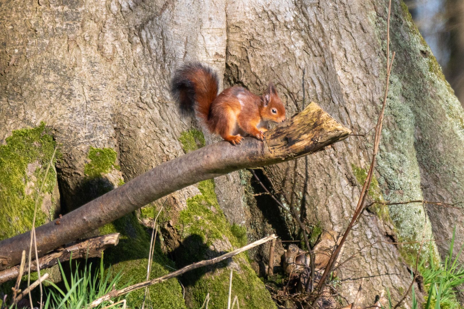 Observation d'un écureuil à la lisère du bois par une matinée ensoleillée