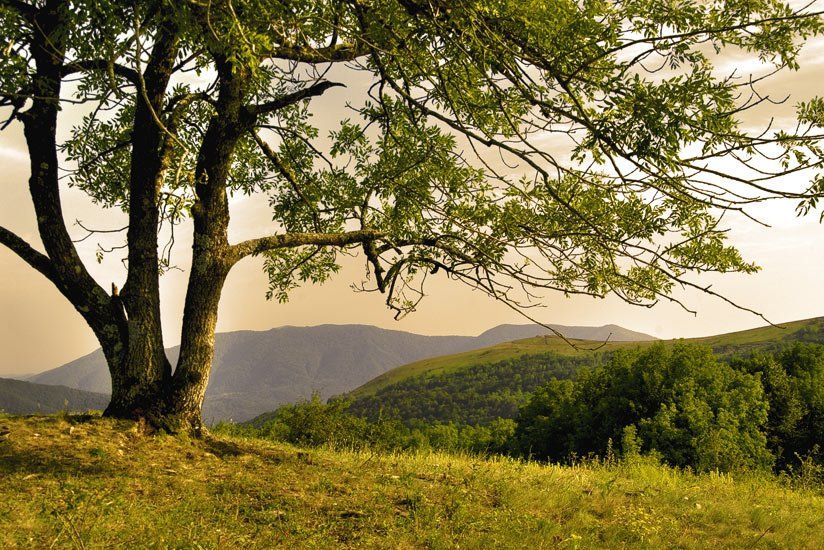 Но странная пятнистость вокруг стволов и внутри дерева.