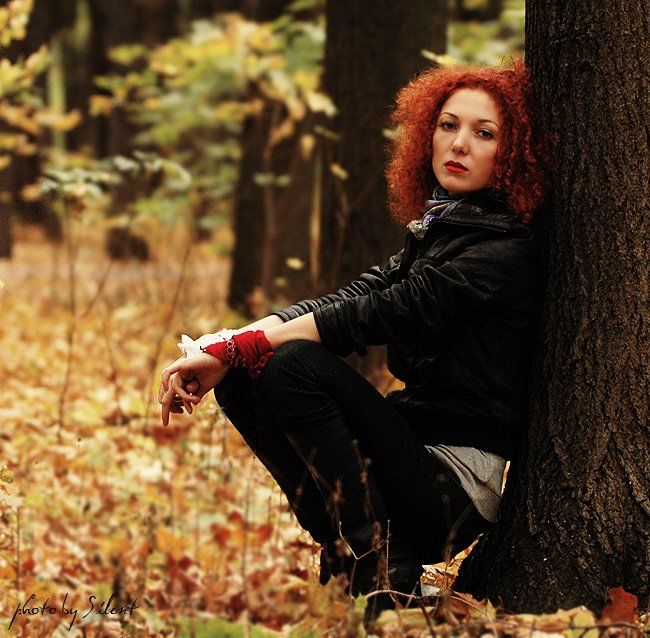 Поза хорошая и взгляд по обстановке (чего от дам добится весьма затруднительно). :три смайла. Однако, что так красного многовато (судя по коре дерева).