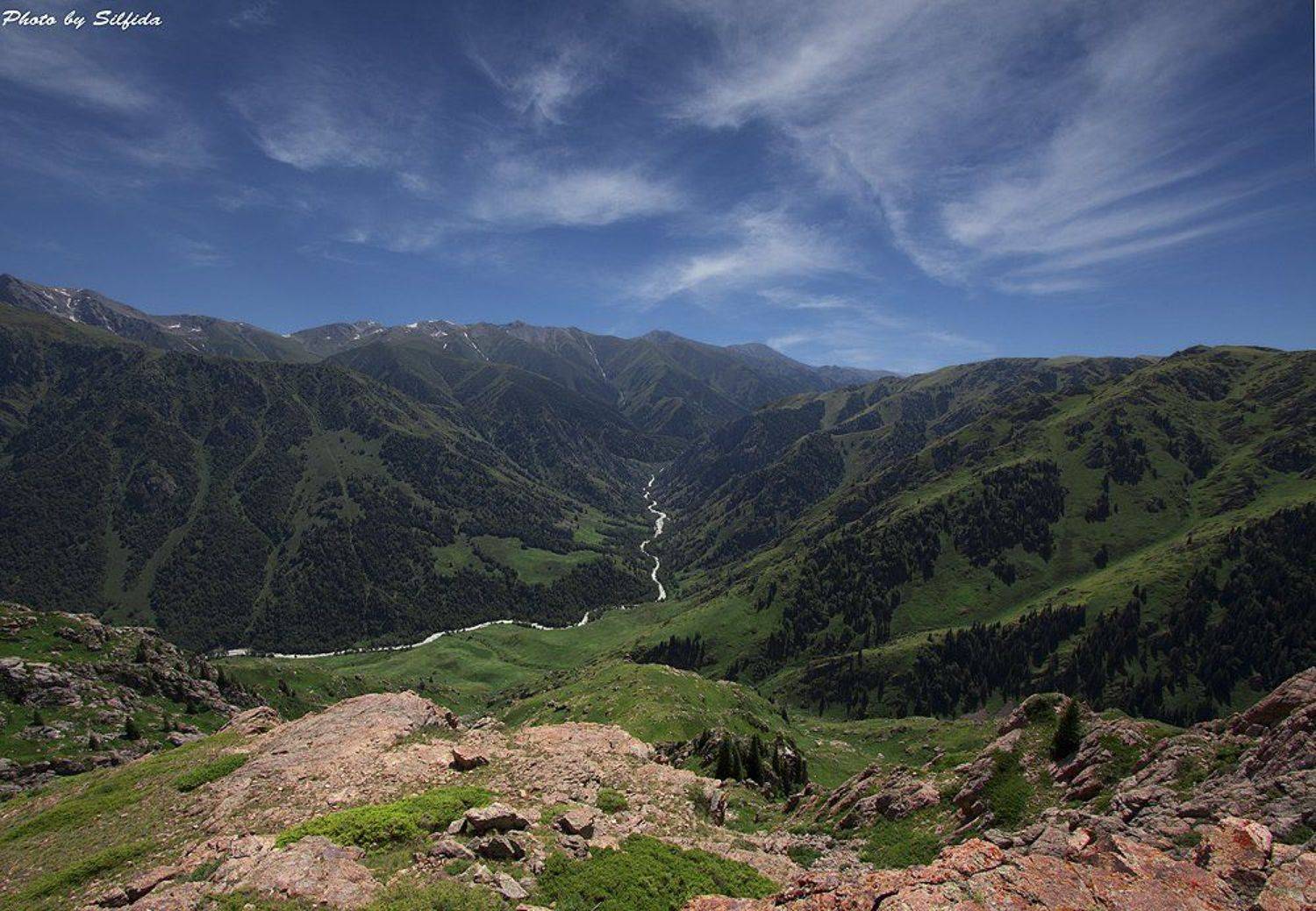 Джунгарский Алатау – это горная система в юго-восточной части Казахстана, простирающаяся с запада на восток вдоль границы с Китаем почти на 400 км. Название свое получила от проживавшего здесь некогда воинственного народа – джунгар, который полностью исчез вследствие натиска Китайской империи. «Джунгарский» можно перевести как «дзюн»-левая сторона, «гар»- рука, а «Алатау» – пестрые горы. Джунгарский Алатау – своеобразная в климатическом отношении страна. Северные склоны напоминают Алтай, южным склонам свойственен тянь-шаньский климат, близкий к климату Заилийского Алатау.
