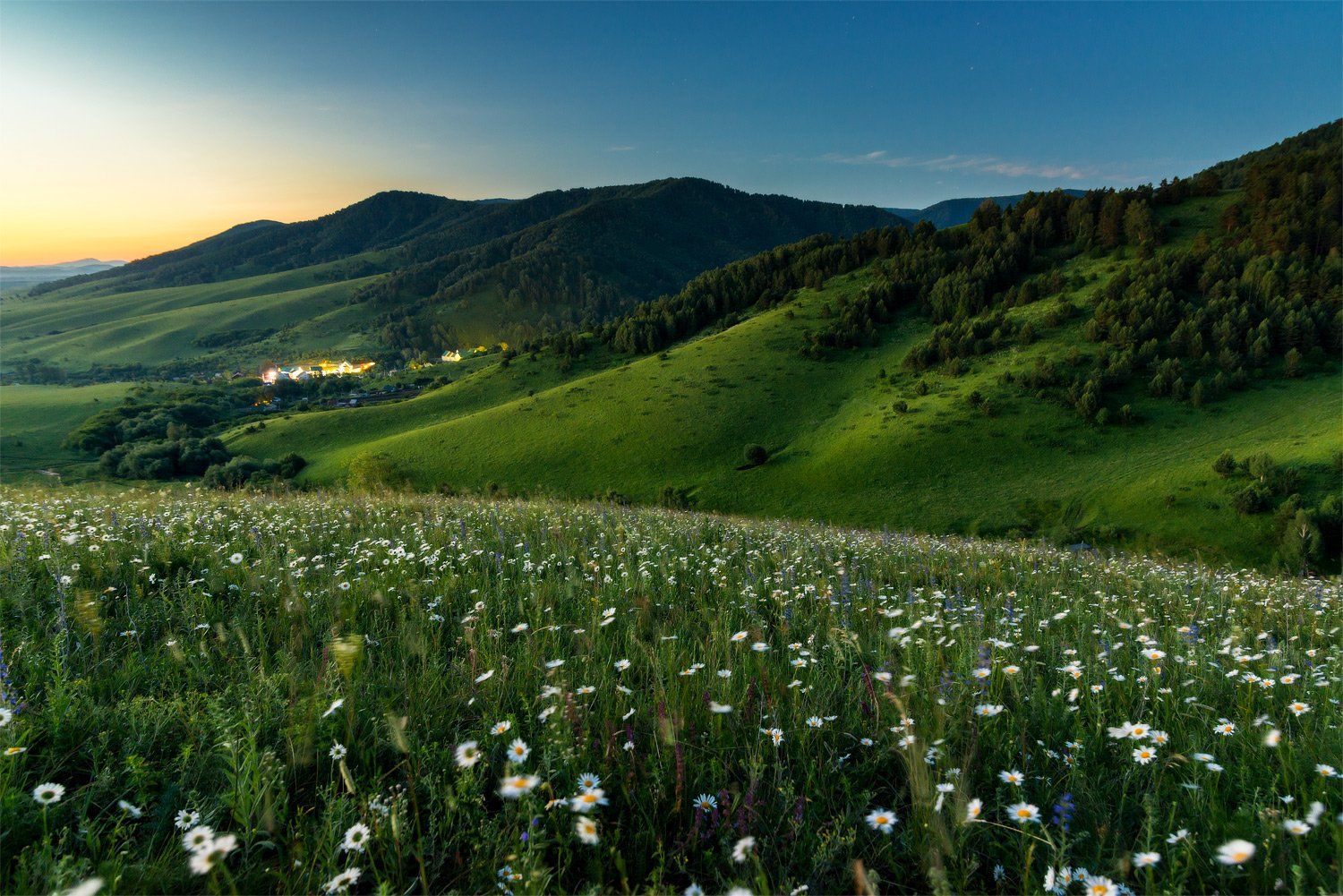 алтай, горы, белокуриха, восход, утро, горы, ромашка, цветы, луг, лето, зелень, трава, лес, заря, Павел Силиненко