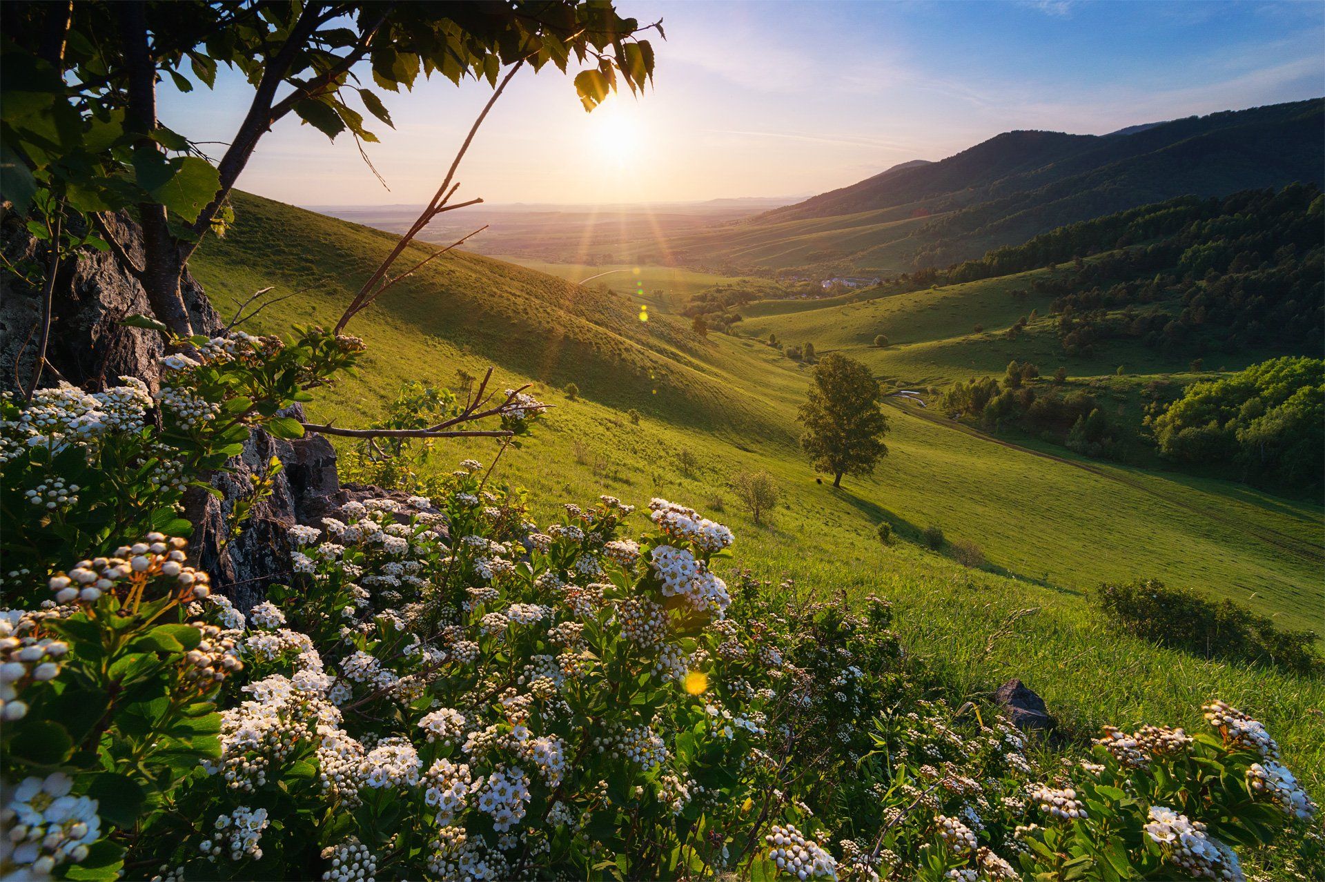 алтай, белокуриха, восход, горы, цветы, долина, дерево, береза, солнце, свет, Павел Силиненко