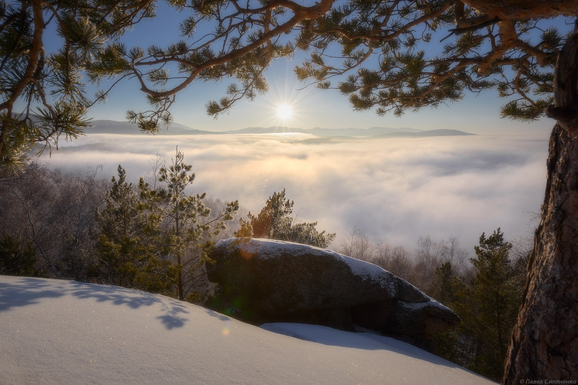 алтай, белокуриха, зима, закат, облака, солнце, горы, лес, снег, пейзаж, свет, Павел Силиненко
