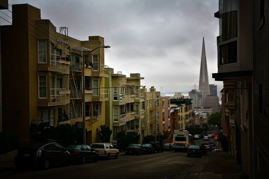 Приятель, у которого я остановился, сказал что мне сильно повезло, что я четыре дня провел при солнечной погоде. В том климате, где город стоит, традиционно другое - серое небо, нависшее так низко что цепляет крыши небоскребов, да морось совсем как во Владивостоке. Но мне повезло, все 4 дня светило и грело солнышко. И только в первый день путешествий и брожений по городу, застал я ту немного хмурую погодку, которая как раз и характерна для СФ в мае, июне и июле :-) Самое лучшее время посещения СФ - август и сентябрь. Надо ехать как ни крути!