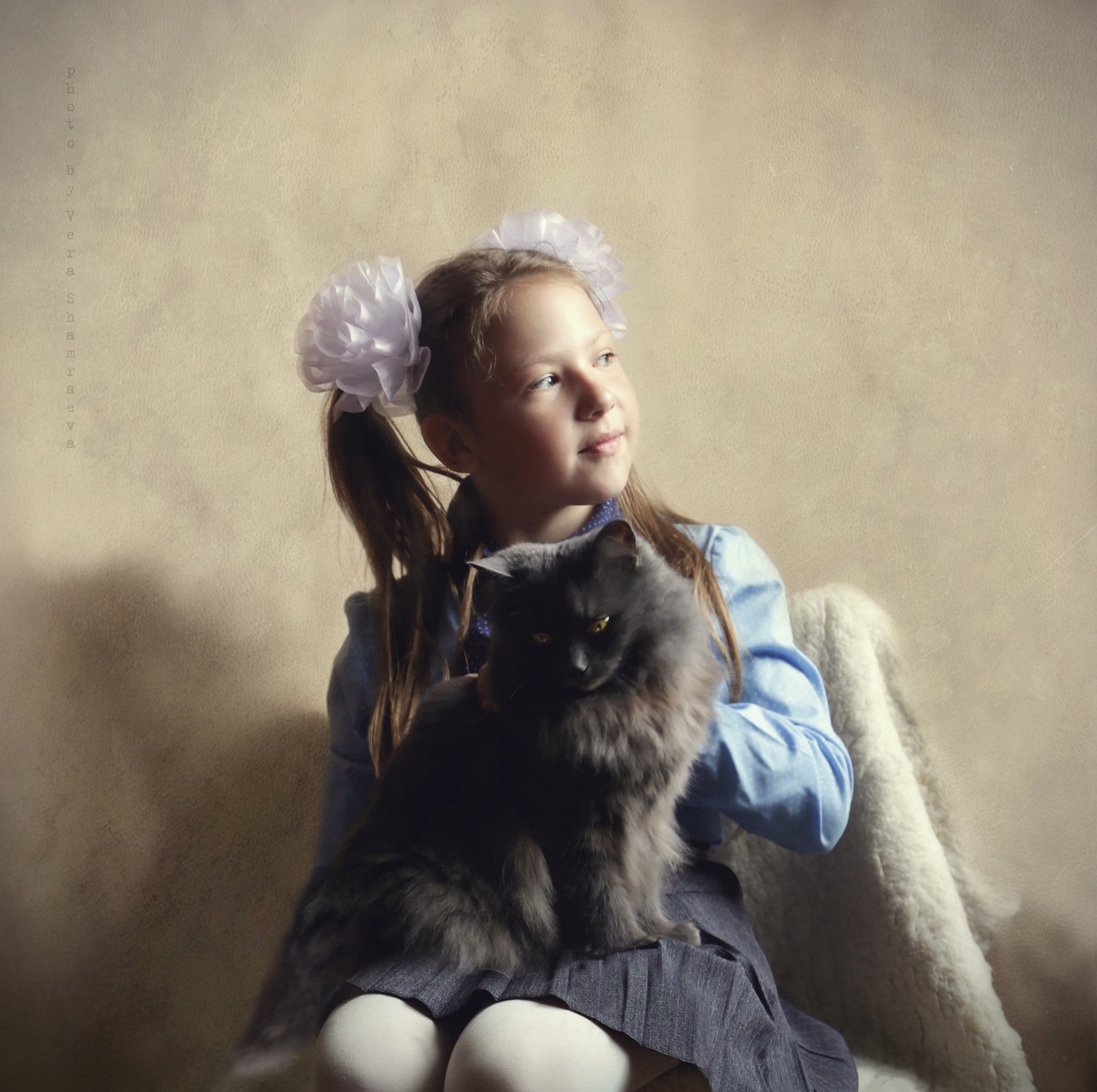 жанровый портрет , девочка, кошка, Вера Шамраева