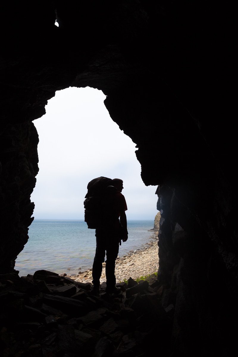 путешествие, путешественник, рюкзак, мужчина, пещера, силуэт, Курилы, Курильские острова, Кунашир, Сергей Козинцев