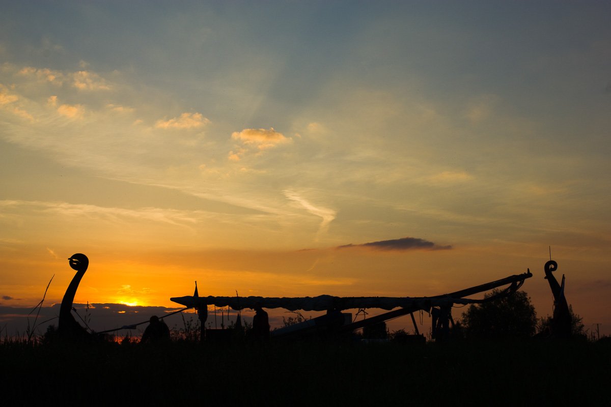 ладья, закат, небо, судно, драккар, плаванье, путешествие, Сергей Козинцев