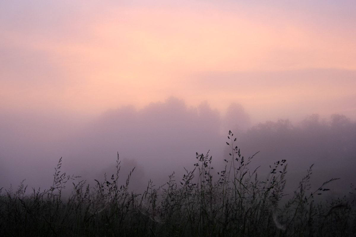 утро, туман, рассвет, трава, небо, Сергей Козинцев