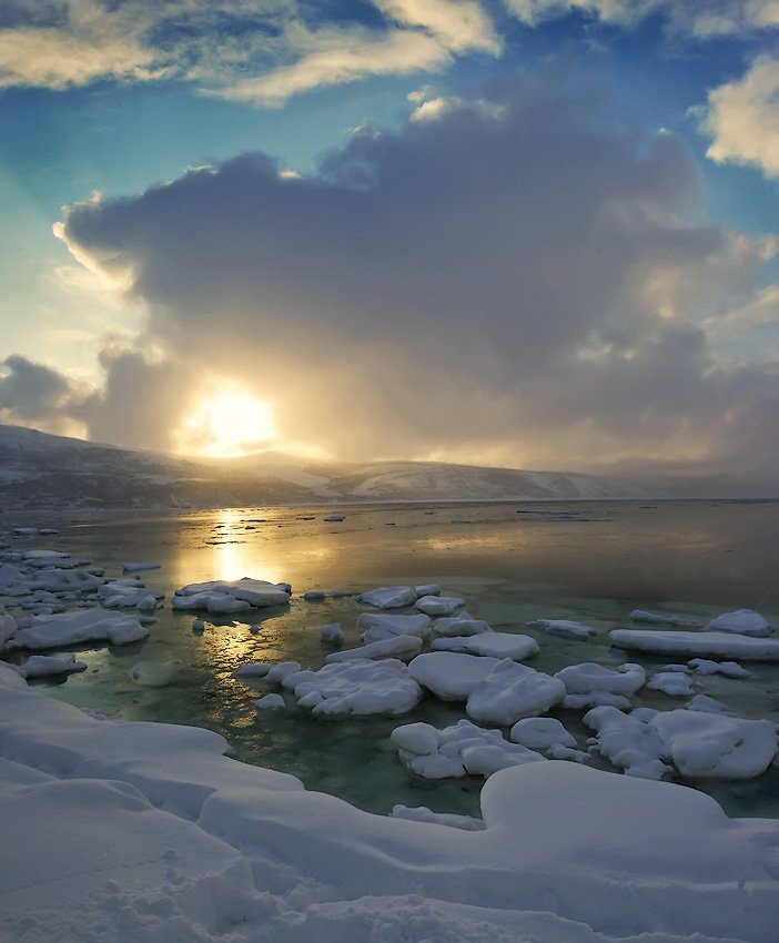 в освещении облаков.