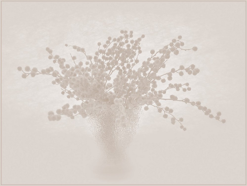 Спасибо! Я даже не знаю, что рассказать. Во-первых, работа старая - сейчас уже не повторю все шаги. Во-вторых, много ФШ - обработка стаканчика (подставка под яйцо), перевод в дуплекс. Есть вариант и в цвете, но сейчас был под настроение этот. А в остальном - контрсвет (естественный, от окна), оберточная бумага с волокнами и на ее фоне стаканчик с мимозой
