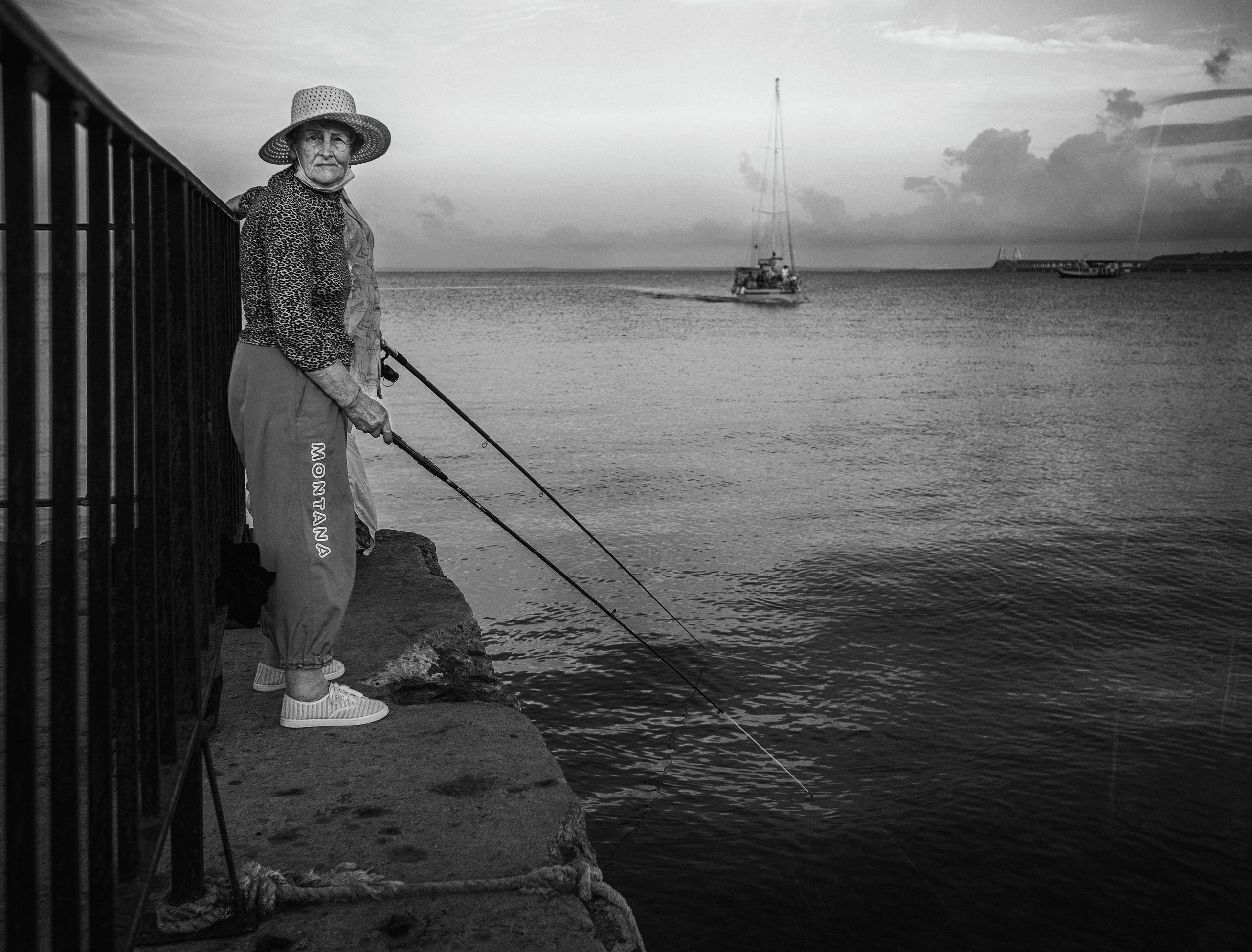 уличная фотография, стрит, черно-белое, монохром, рыбалка, рыбачка, черное море, вечер, лето, атмосфера, керчь, крым, россия, Щербак Анатолий