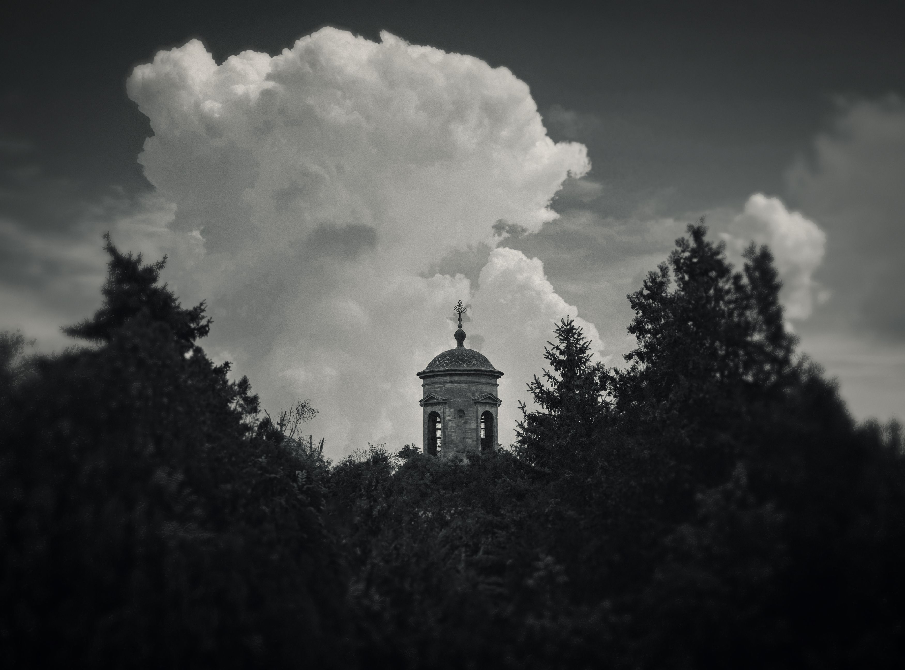 черно-белое, монохром, пейзаж, архитектура, атмосфера, церковь, храм, тучи, небо, высота, минимализм, винтажная оптика, гелиос 44-2, керчь, крым, россия, Щербак Анатолий