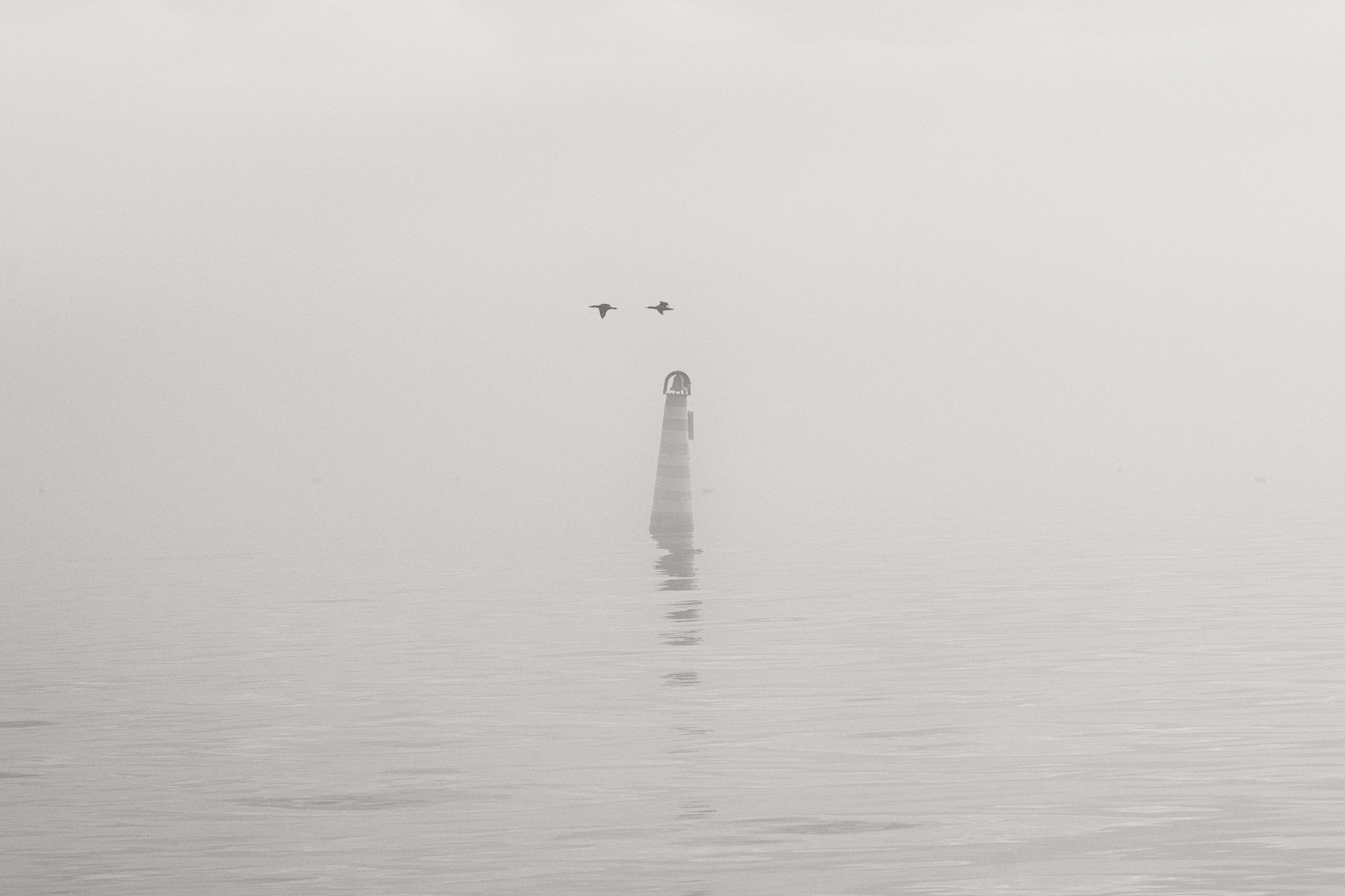 зима, природа, уличная фотография, стрит, атмосферное, туман, мистика, загадочность, репортаж, явление, черное море, буй, полёт, птицы, черные бакланы, винтажная оптика, мануальное, юпитер 37а, керчь, республика крым, россия, Щербак Анатолий