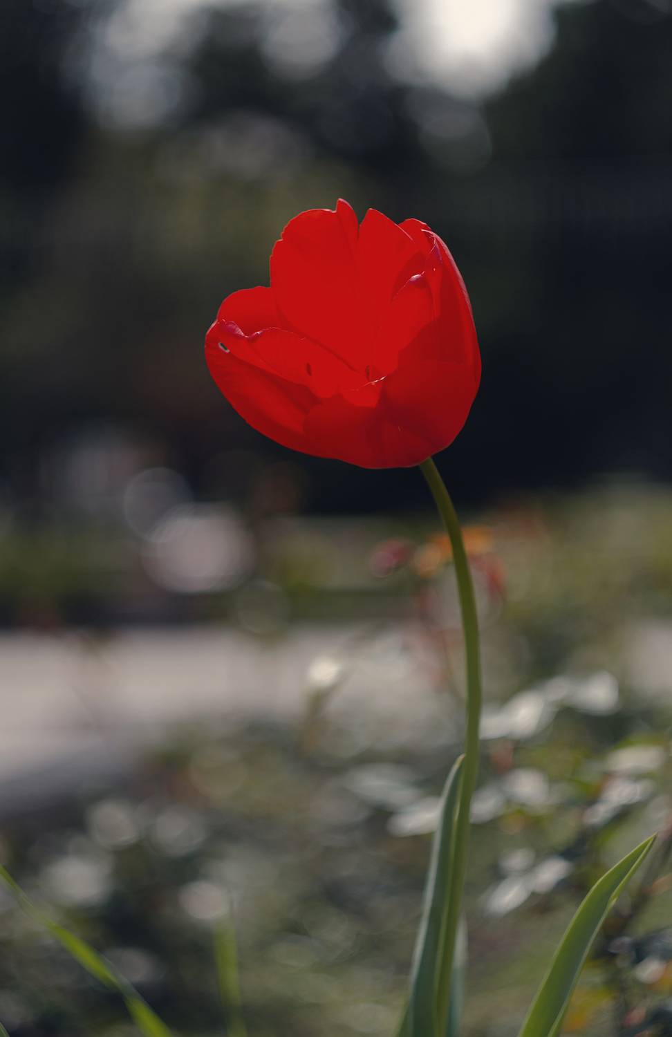 Алые тюльпаны в городе.