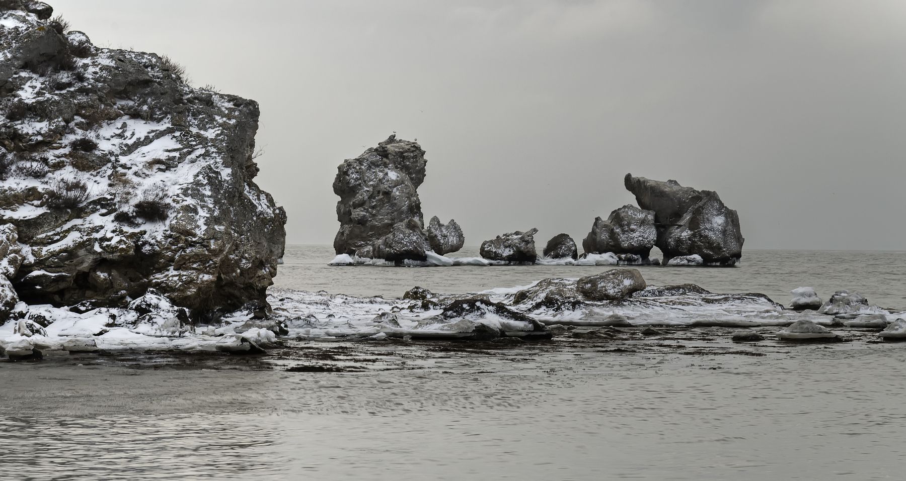 Зима беседкаМоре камни