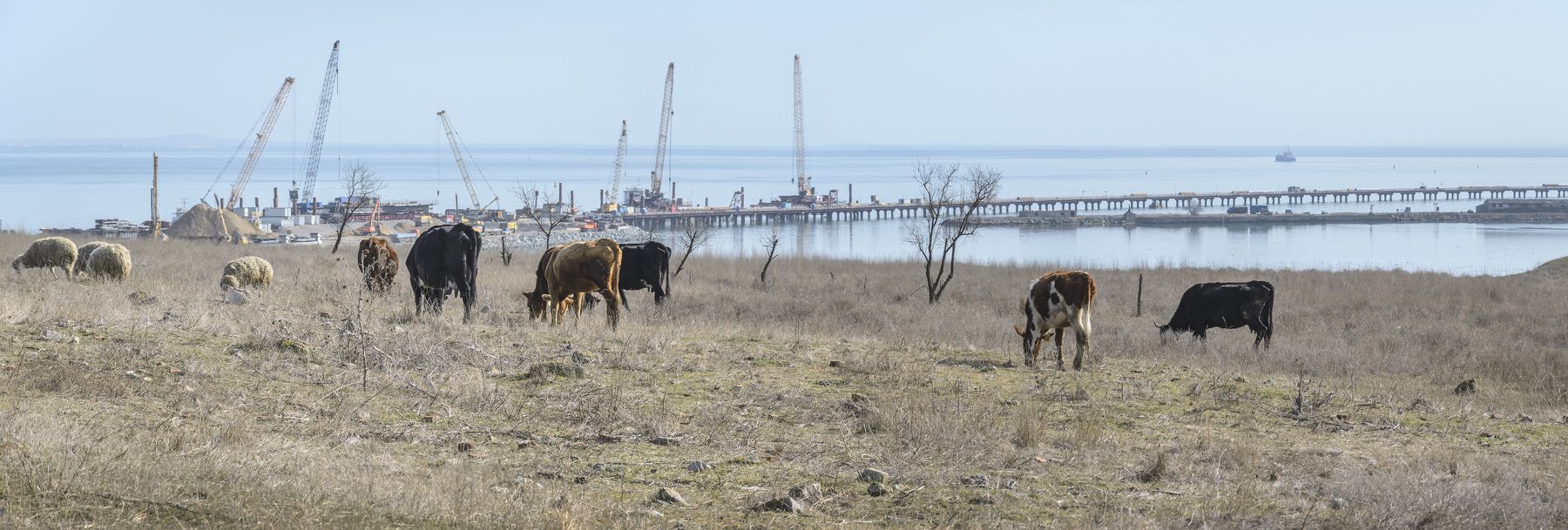 Строительство Керченского моста. Март 2017 год. Керчь, Республика Крым, Россия.