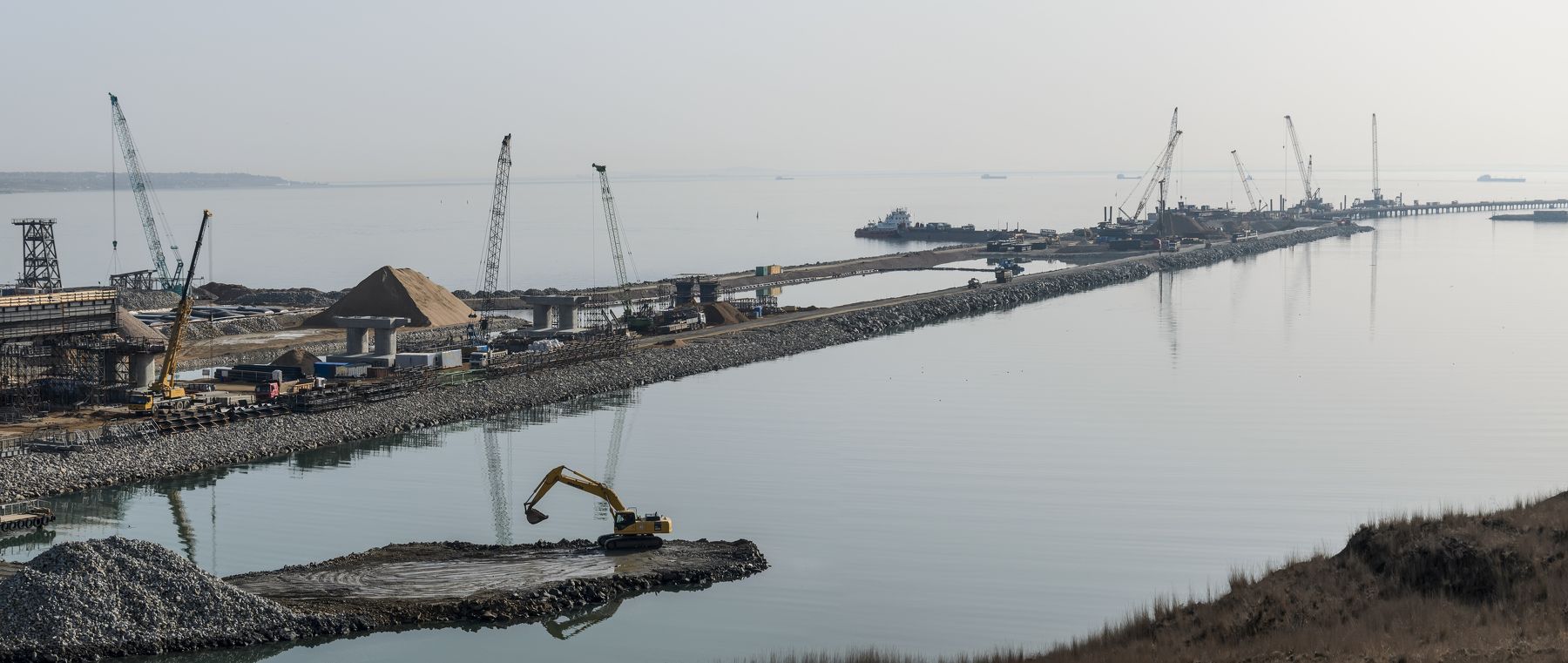 Строительство Керченского моста. Март 2017 год. Керчь, Республика Крым, Россия.