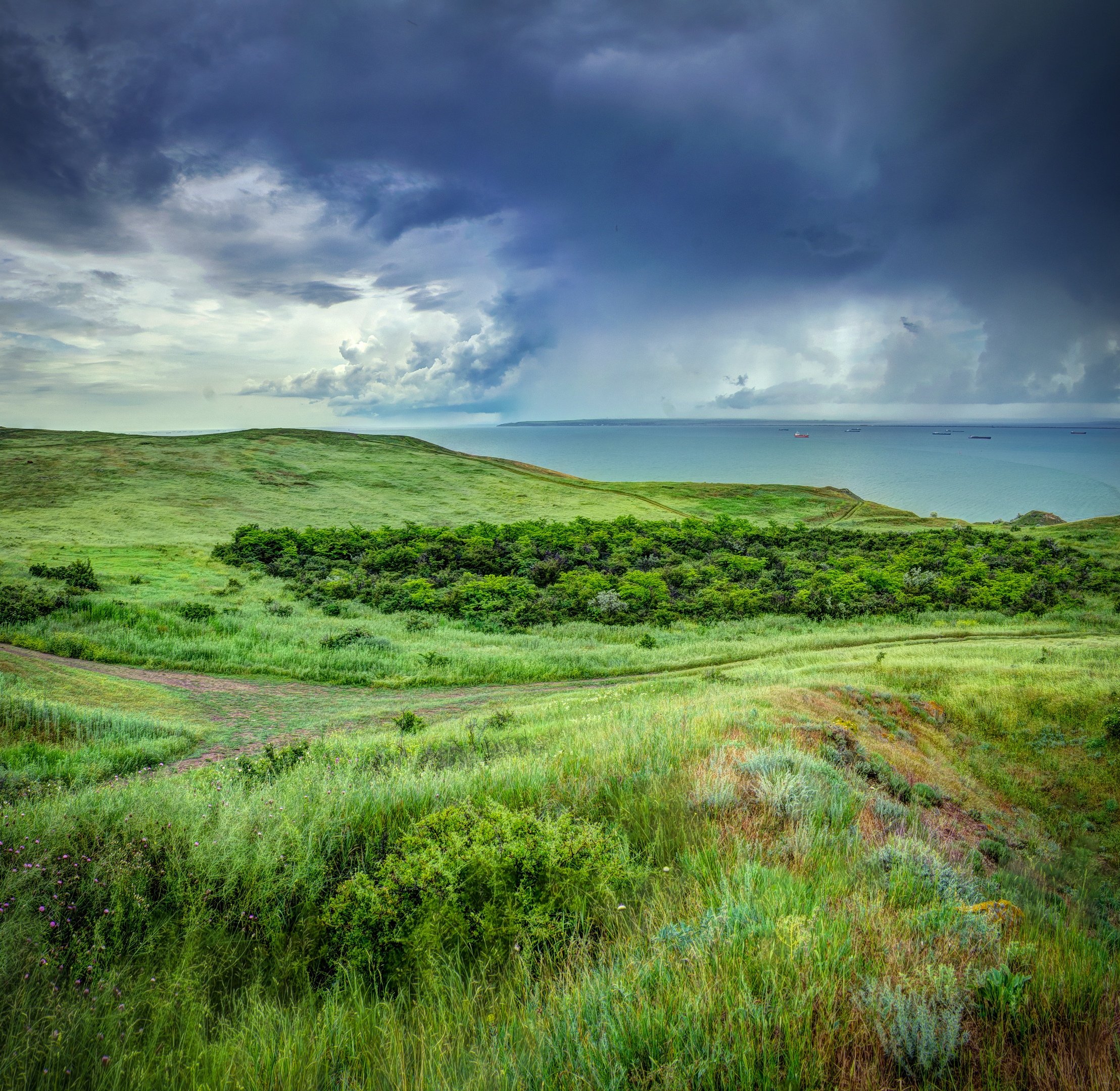 весна, пейзаж, холмы, море, ненастье, ливень, азовское море, меотида, черное море, понт эвксинский, керченский пролив, пантикапей, боспорское царство, керчь, крым, россия, Анатолий Щербак
