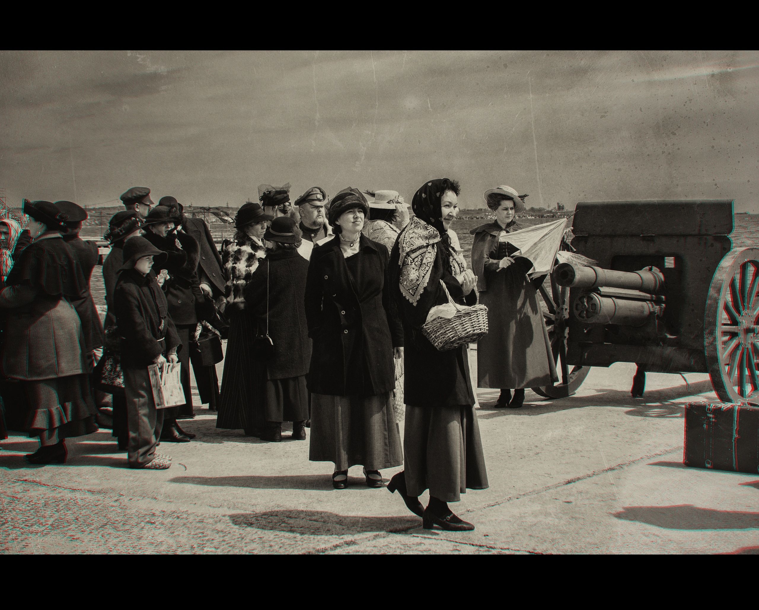 В дни памяти 100-летия Русского Исхода. Военно-историческая реконструкция эпизода Русского Исхода. Апрель 2021 год. Керчь, Республика Крым, Россия.