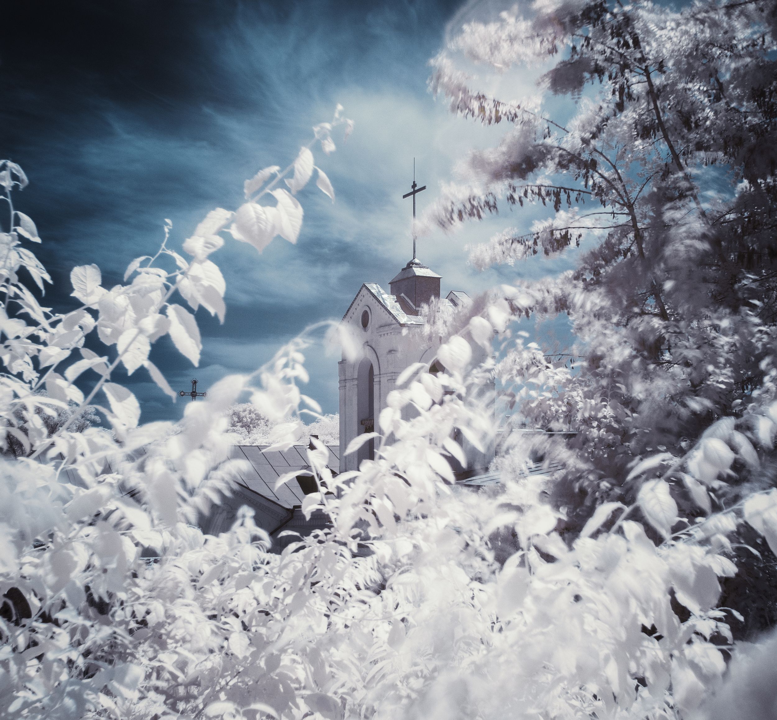 инфракрасная фотография, весна, длинная выдержка, старая улица, храм александра невского, керчь, крым, россия, анатолий щербак, Анатолий Щербак