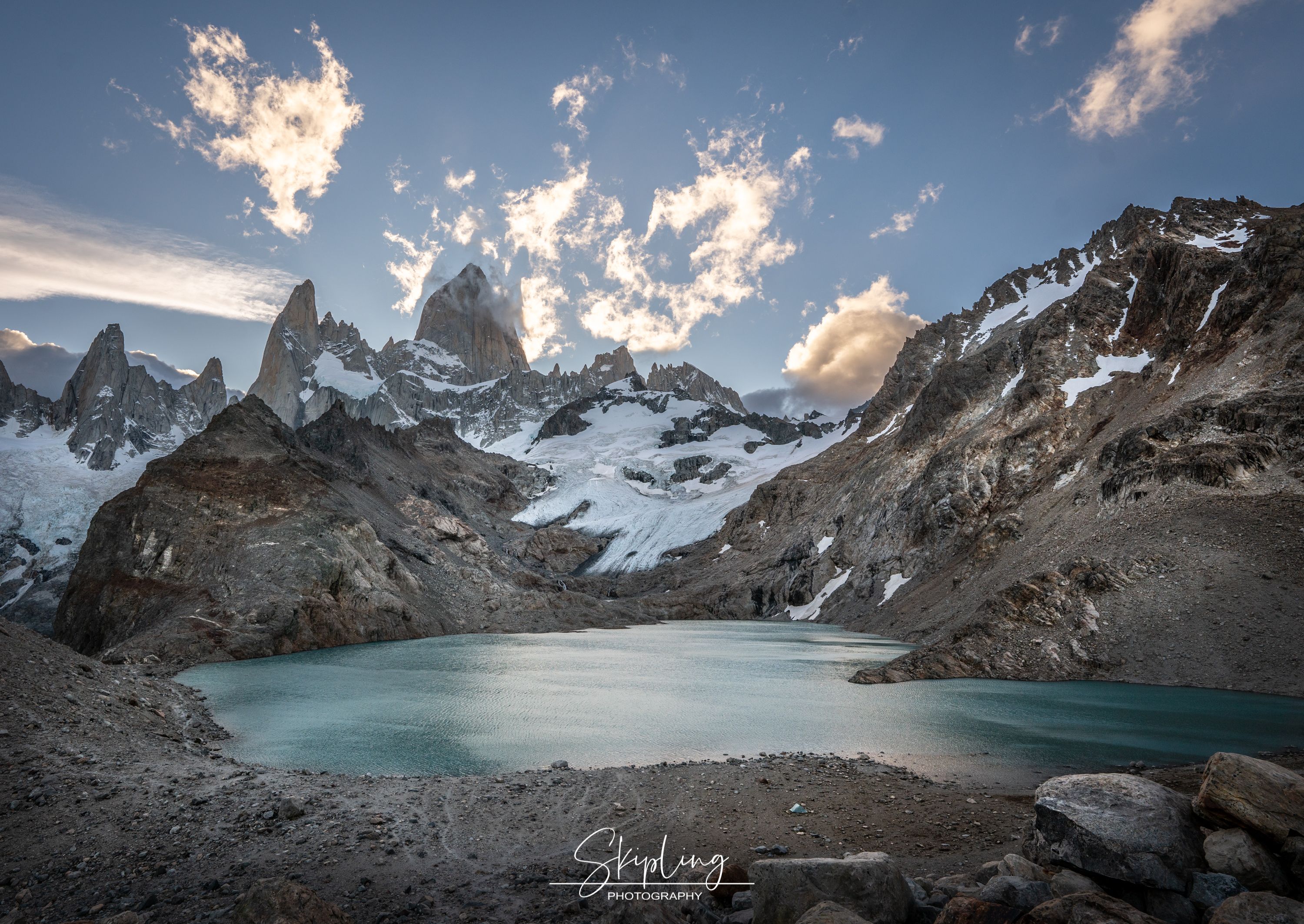 В тишине раннего утра, когда первые лучи солнца касаются вершин, озеро Лаго де los Tres отражает небесную синь и остроконечные пики Фицроя. Это место — настоящий символ дикой Патагонии, где природа демонстрирует свою неприступность и красоту. Осень придаёт пейзажу особую глубину: снег на склонах контрастирует с тёплыми оттенками неба, а вода — как зеркало, хранит мгновение. Фотограф Владимир Ганюшкин запечатлел этот миг, где время останавливается, а душа — вдохновляется.