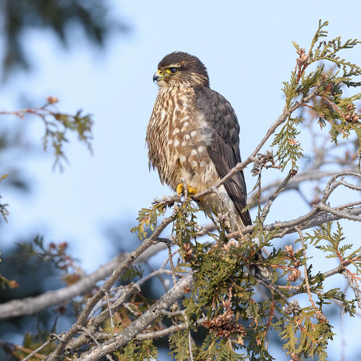 The merlin (Falco columbarius) is a small species of falcon from the Northern Hemisphere, with numerous subspecies throughout North America and Eurasia.