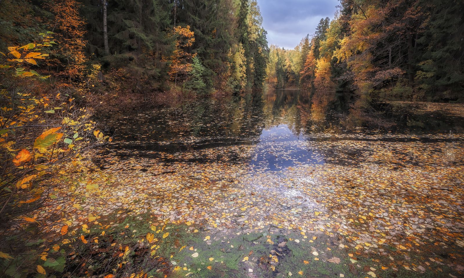 пасмурно осень вечер листья пруд октябрь павловск небо  лес деревья, Скороходов Константин