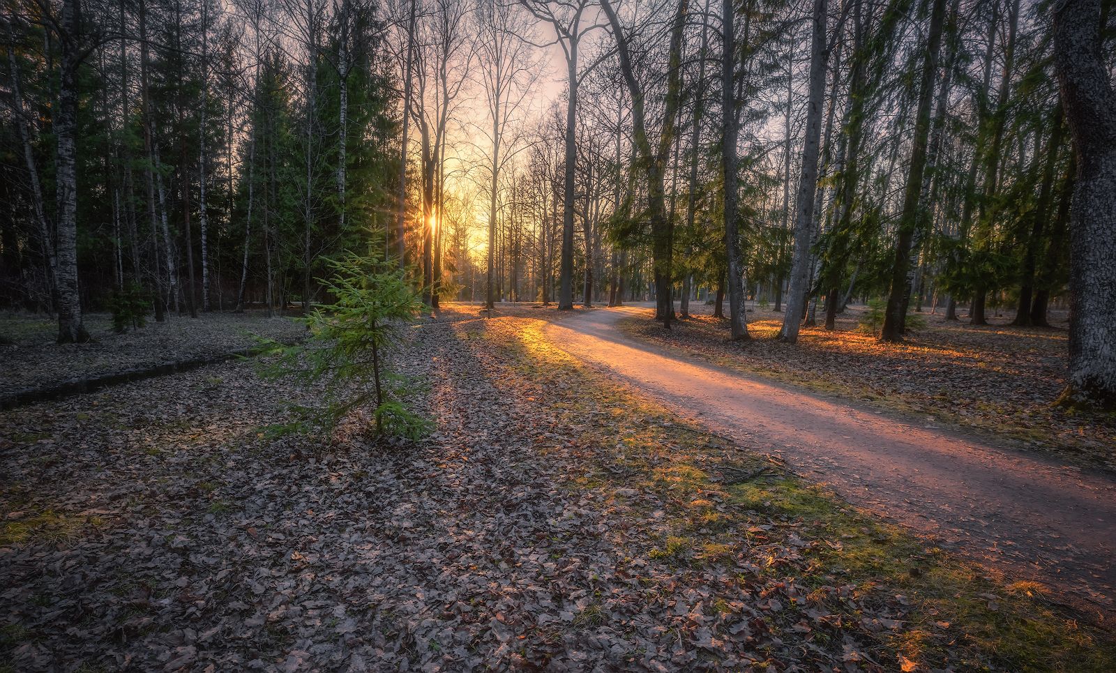 царское село вечер закат дорога солнце апрель, Константин Скороходов