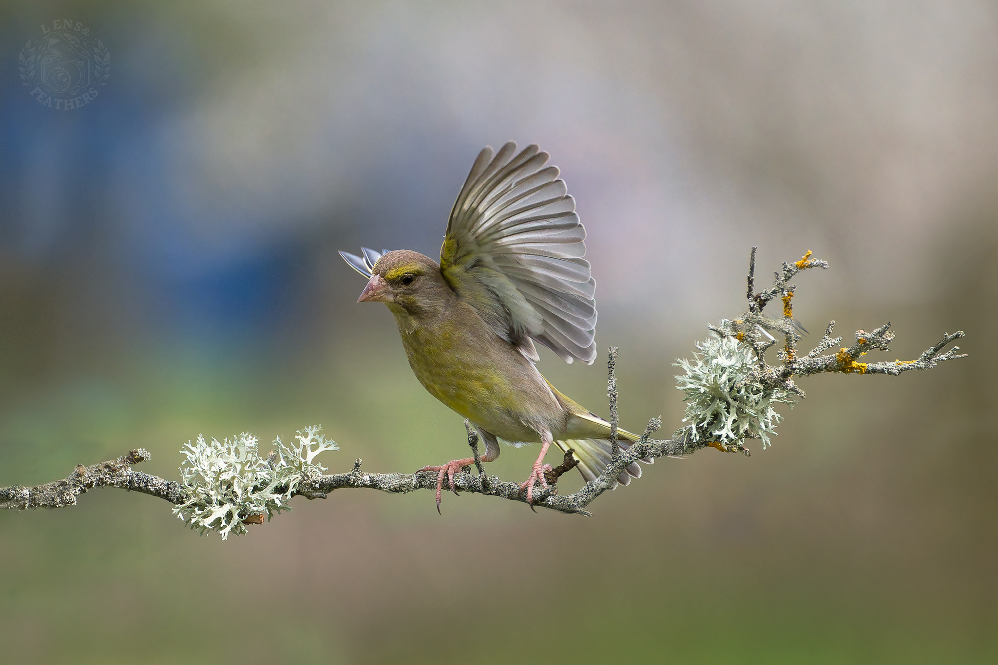 The moment is sharp—the wing spread and the twig held in the beak show good timing. The colors are natural and pleasing. The background blur separates the subject well.