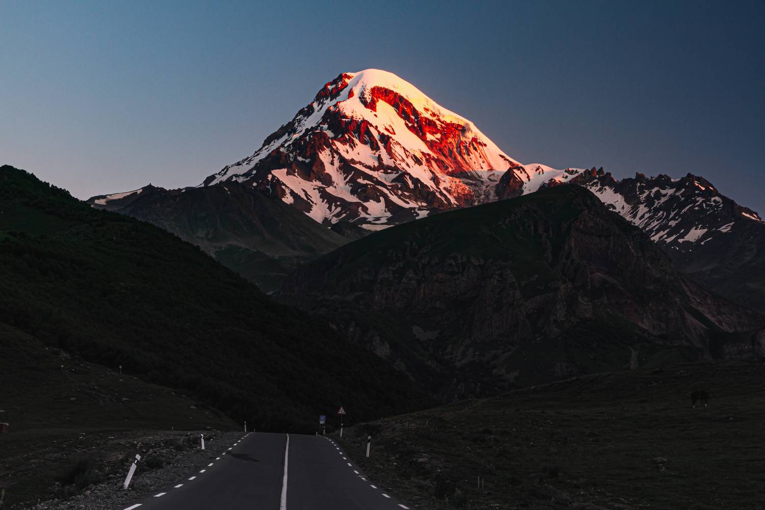 грузияпейзажрассветказбекгорадорогавулканстепанцминдавершинаgeorgiatravelkazbeginaturesunrisemountainscaucas. road