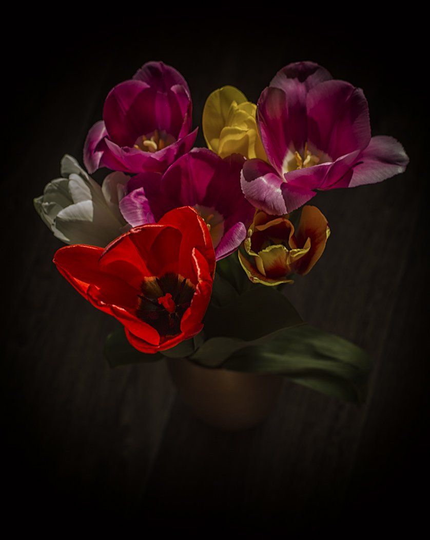Букетик тюльпанов на следующий день после 8 Марта. Всех фотодевушек независимо от возраста и любимого жанра, С прошедшим праздником! Не спец по натюрмортам, поэтому только для Вас! :)