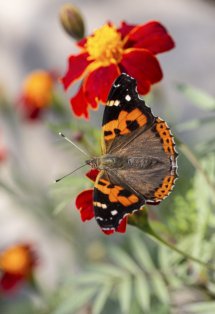 бабочка, индийский, адмирал, vanessa, indica, цветок, бархатцы, владивосток, осень, октябрь, Евгений Слободской