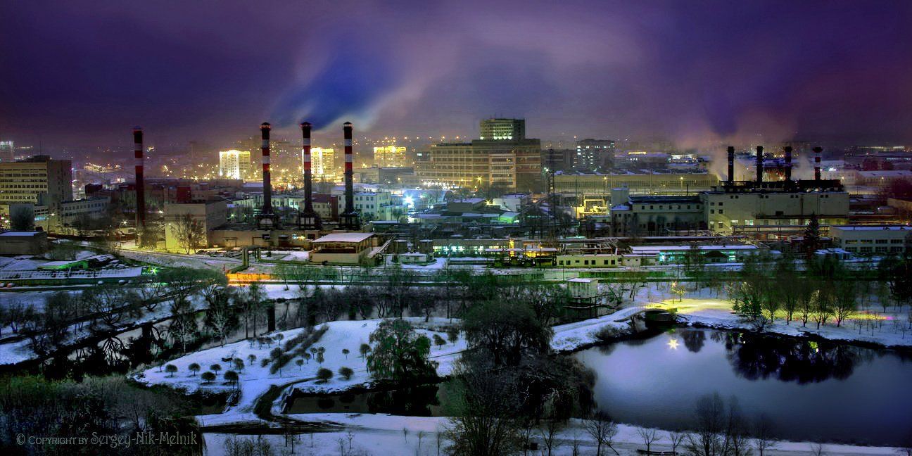 ...со сладким ароматом шоколадной мануфактуры "Коммунарка" в Минске, Фото вечерний Минск с высоты,