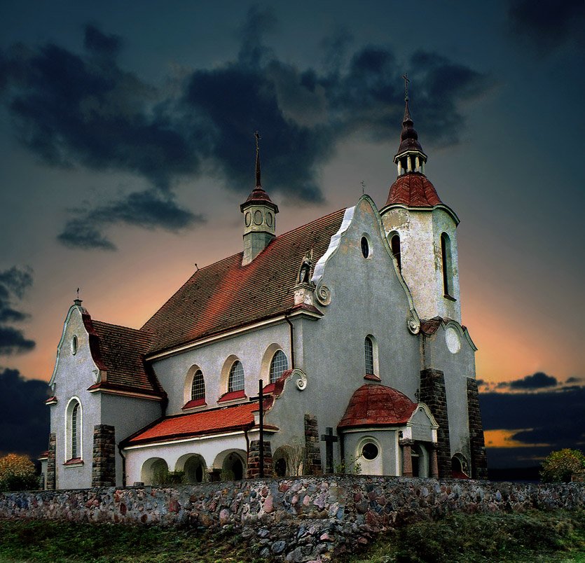 беларусь,  архитектура, вечер, сумерки, церковь, Melnik-oy Serg-N-
