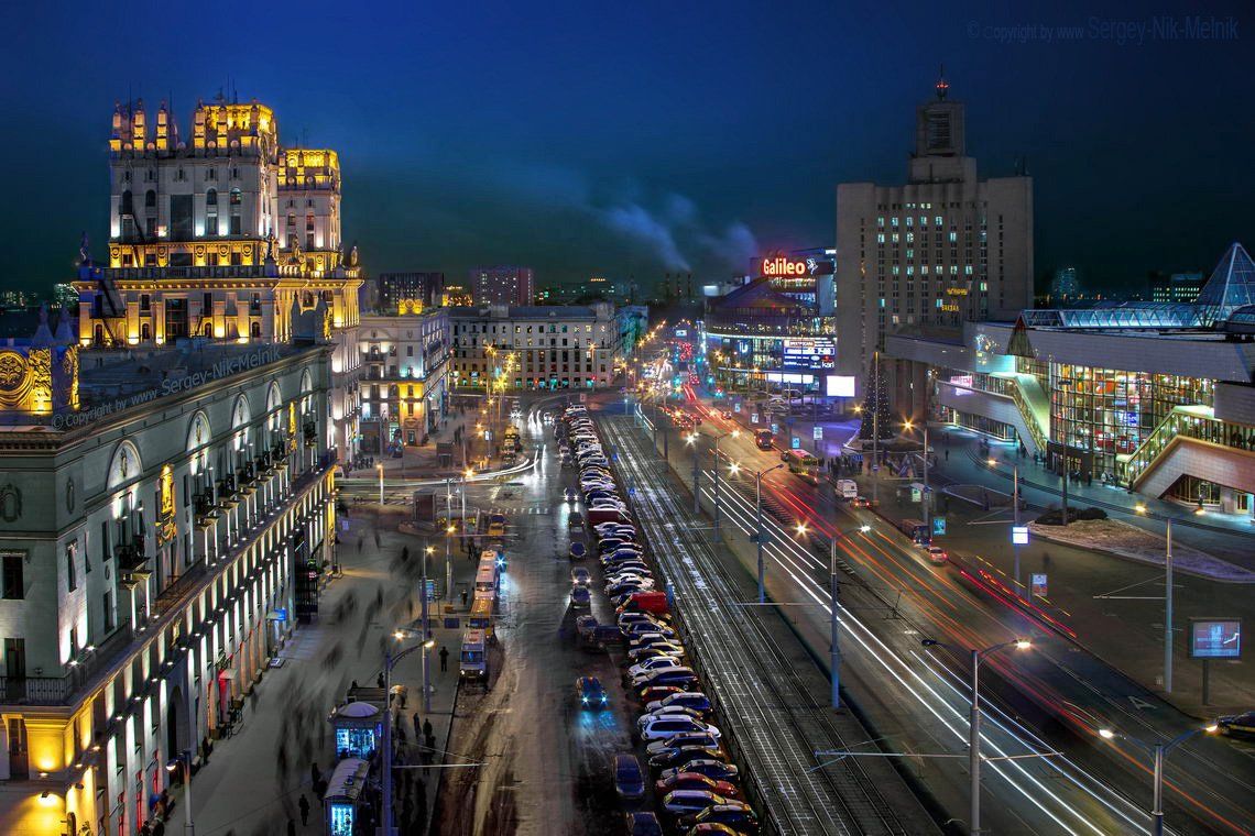 Привокзальная Площадь в Минске. Вечерняя цвето-какакафония перед Воротами Города,